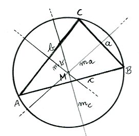 4. Wähle als Radius für den Zirkel die Entfernung von M zu einem der Eckpunkte des Dreiecks!